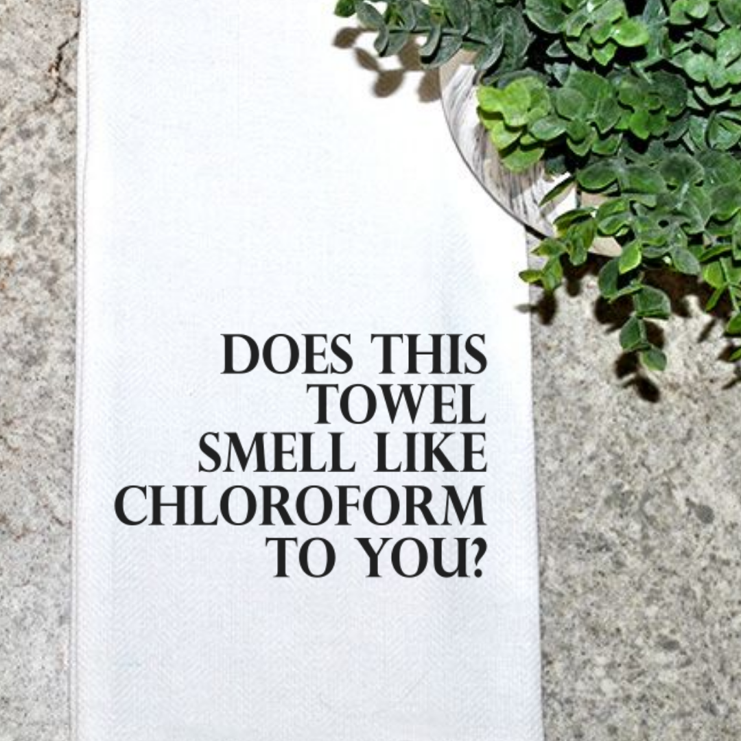 Chloroform- White Tea Towel with Black Lettering, Cotton