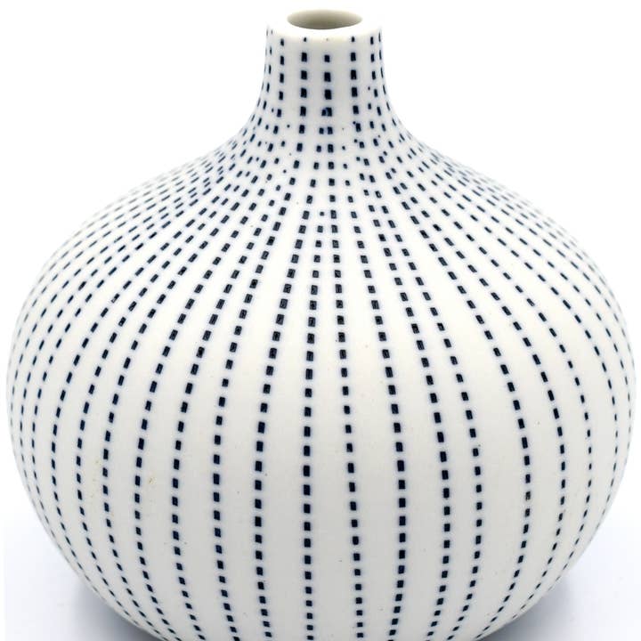 Congo Tiny Porcelain Bud Vase (Large) - White with Blue Dotted Lines
