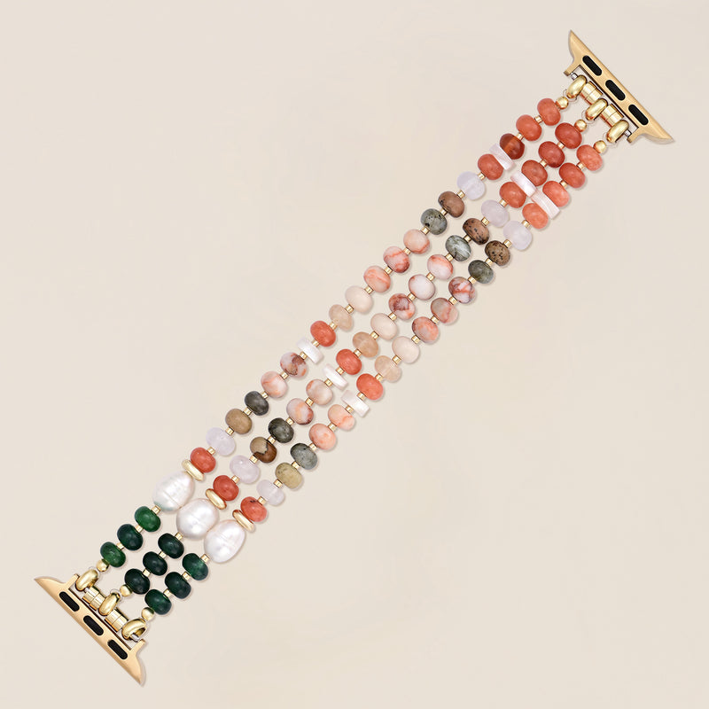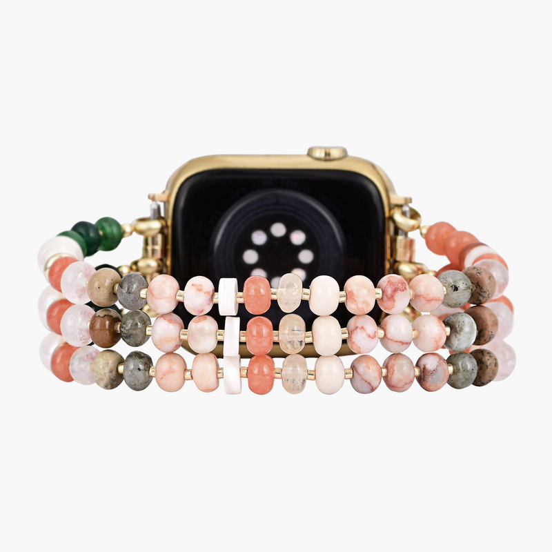 Brighten your look with the Coral Natural Stone Stretch Apple Watch Strap, a vibrant blend of coral and complementary natural stones that capture the warmth of summer. This colorful, earthy accessory adds a playful yet balanced touch to any outfit.