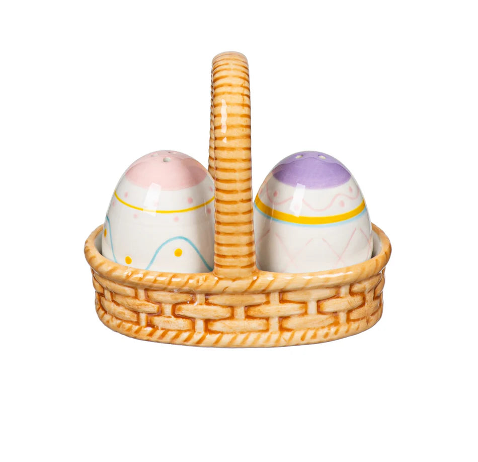 Easter Eggs in Basket Ceramic Salt and Pepper Set