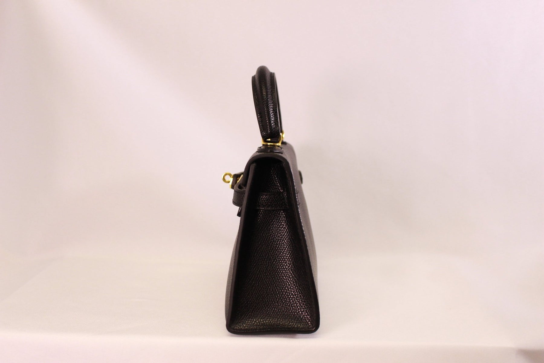 The front flap is secured with a sleek turn-lock closure, while the sturdy top handle adds classic appeal. A detachable, adjustable shoulder strap allows for versatile carry as a handbag or crossbody. This bag is perfect for both everyday wear and special occasions.