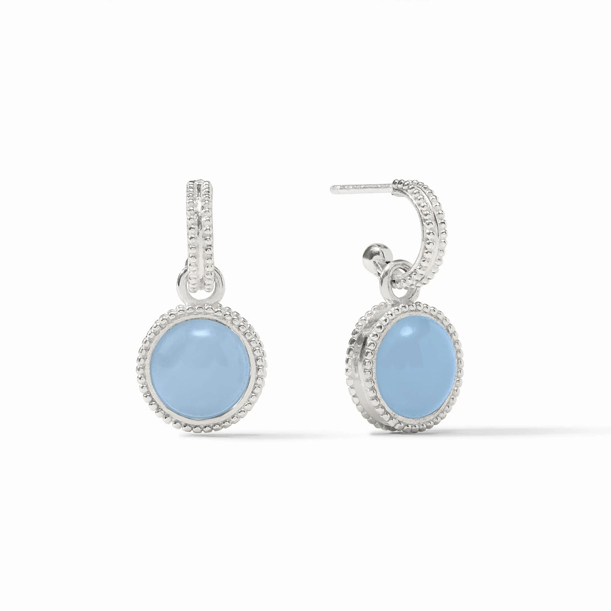 Fleur-de-Lis Hoop & Charm Earring Silver - Chalcedony Blue