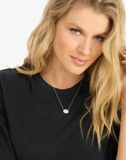 BIG DIAMOND ENERGY. Say "Hello Gorgeous!" to our hand-cut oval simulated diamond. This pendant necklace is the perfect go-to—every day—totally obsessed—never take it off piece.