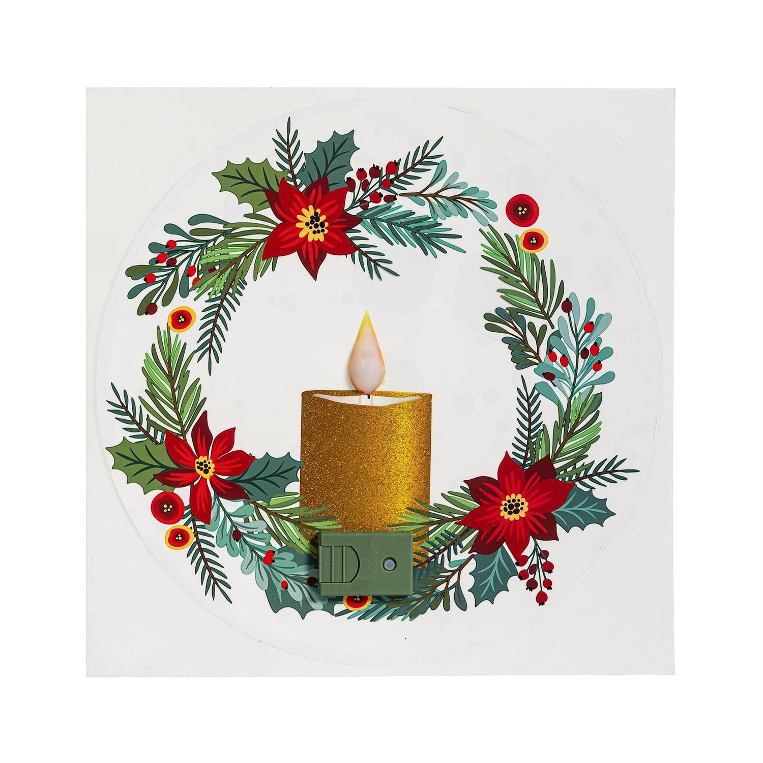 Holiday Poinsettia with Flickering Light Window Decal