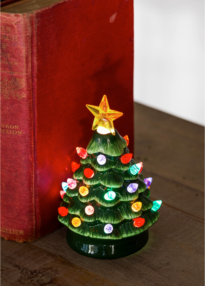 This mini ceramic tree figurine is sure to add some sparkle to any space for the holidays. With LED lights that bring the ornaments on the tree to life, this ceramic figurine changes color. The perfect way to add charm to mantels, tabletops and more, this tree is sure to bring joy this Christmas season.