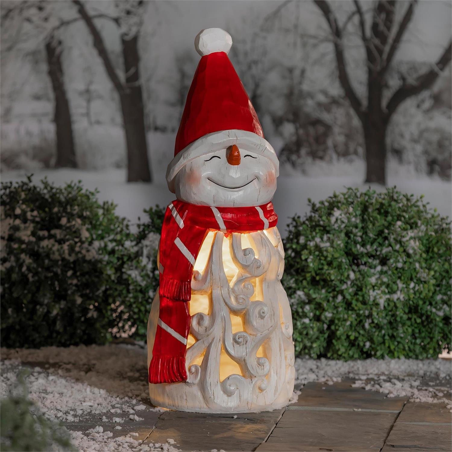 Elevate any garden or yard into a captivating outdoor gallery with this statue. It features an adorable Santa Claus with elegant cutouts. Our statues help merge nature’s beauty with art to create a timeless and enchanting space. It lights up and casts a soft glow during the night for an added touch of whimsy. This piece is made from durable materials, so it's outdoor safe and weather resistant. It makes a great gift for anyone who loves to turn their home into a winter wonderland.