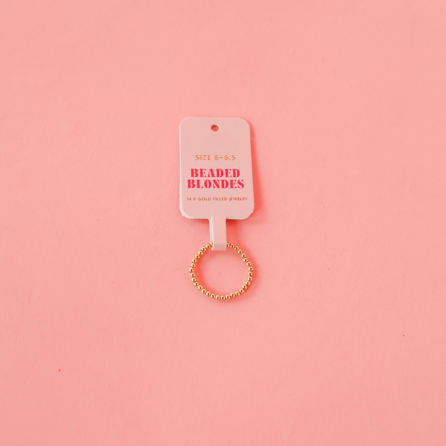 Our dainty gold filled Beaded Bands™ are an elastic ring perfect to wear alone or to be stacked with your class ring or other statement rings. We suggest getting the same size as your ring.