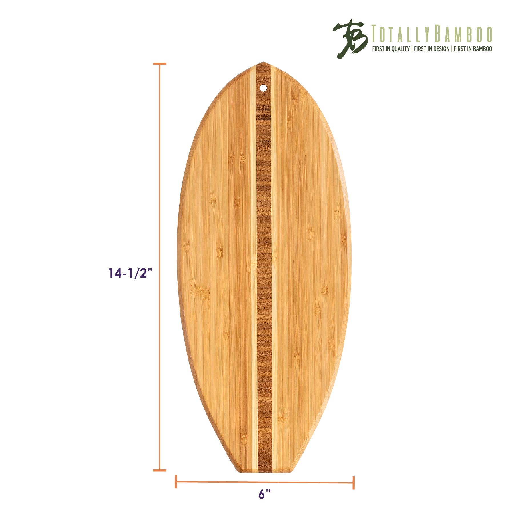 Surf's up! Add some bodacious beach style to your kitchen or gift assortment with our Li'l Surfer Board. It features a gorgeous end-grain inlay down the center of the vertical-grain board and is in the unmistakable shape of a surfboard. It includes a hang tie to easily double as a décor piece as well. It's a great item for any store in beach communities!