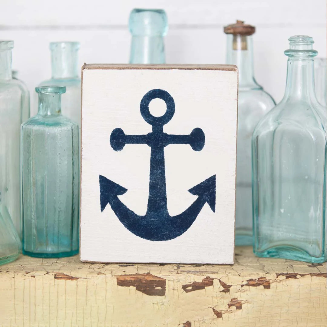 Navy Anchor Decorative Wooden Block