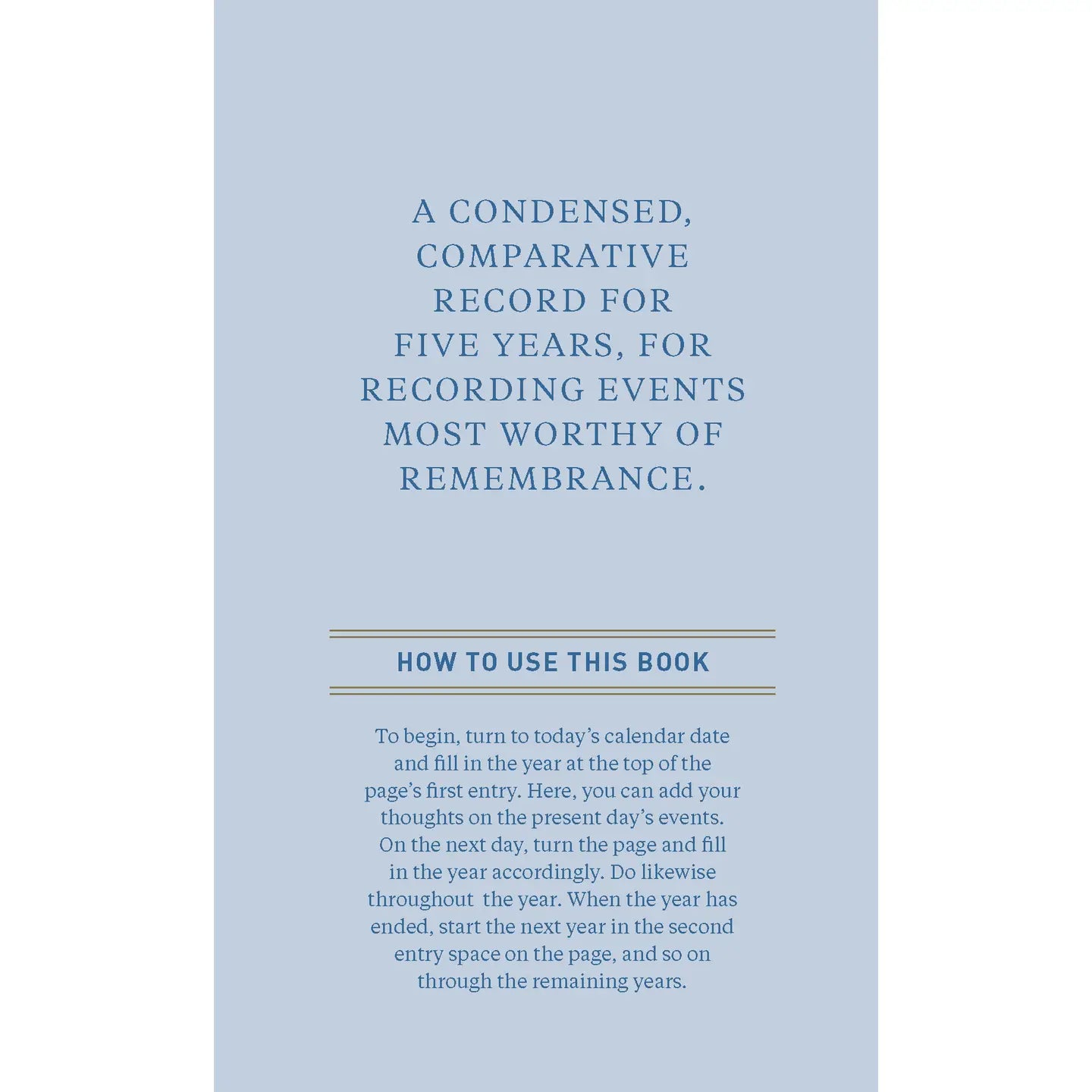 This keepsake memory book invites you to capture just a single quick line once a day over five years. As you write, the layout allows you to see your highlights and reflections on the same date in previous years. Uniquely rewarding, simple to complete, and presented in an exquisitely handsome package, this denim journal will become a treasure trove of memories to cherish forever.