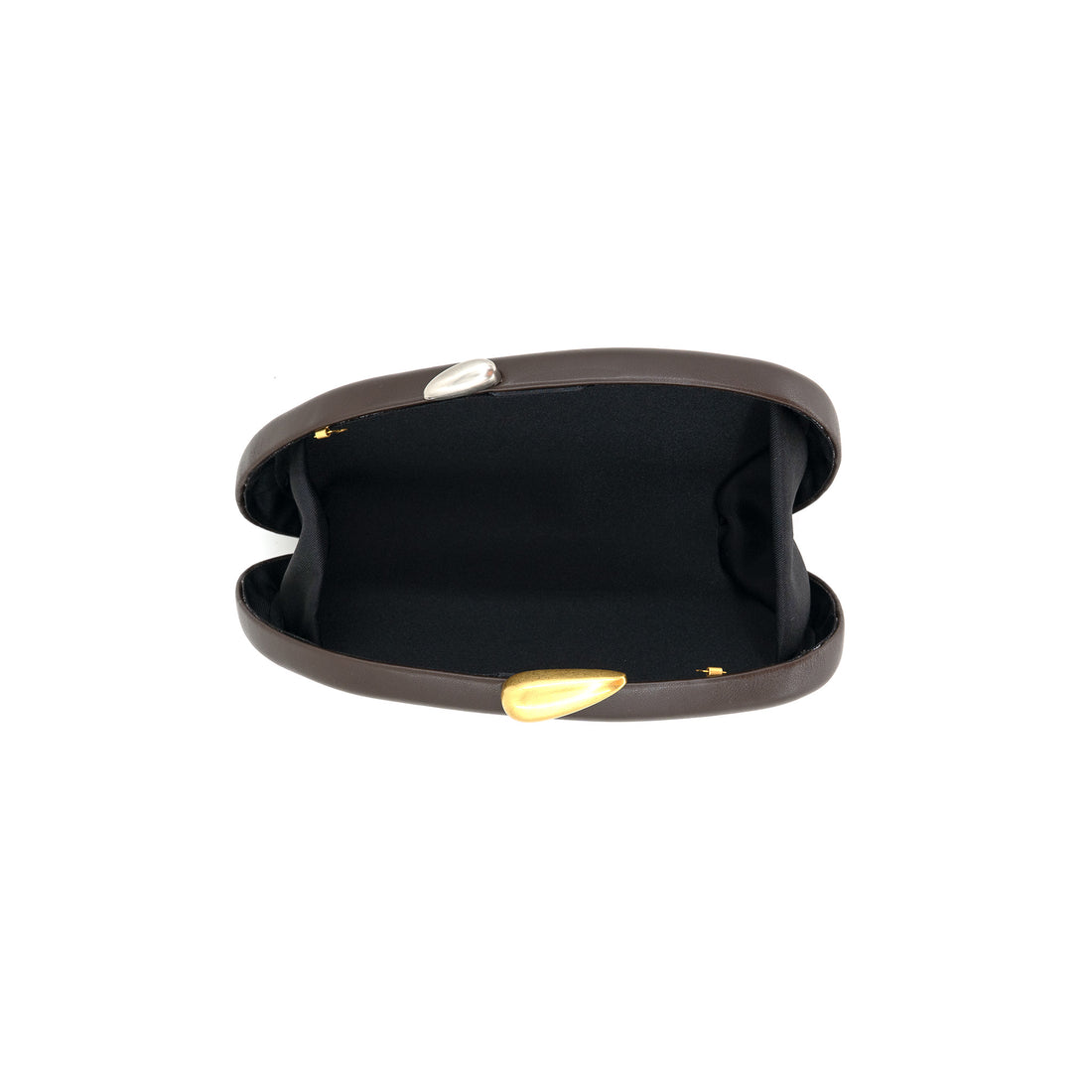 Meet the Paulina clutch—a modern essential with an eye-catching asymmetrical shape that stands out from the crowd. Featuring a mixed metal closure and compact 9 x 4 x 2 inch dimensions, it's sized just right for carrying your everyday must-haves. Whether you're heading out for brunch or a night on the town, this versatile clutch complements any outfit with understated sophistication.