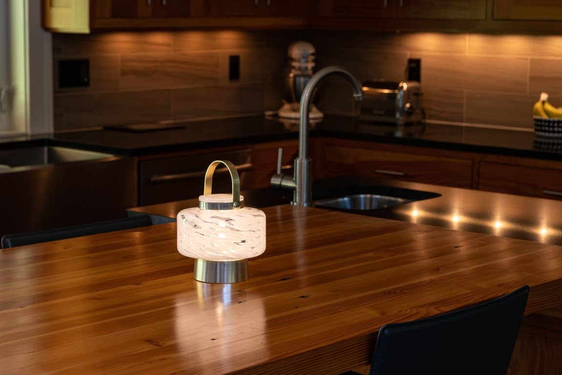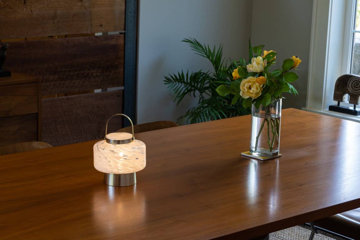 Sophisticated and versatile with an innovative portable design, it’s perfect for use on a bedside table, foyer, or desk top, or take it outside for a picnic or dining alfresco. The lantern is powered by a rechargeable battery and comes with an A/C power adapter. Lantern will glow for 10-12 hours on a full charge. Handblown glass with high-quality weather-resistant design for indoor and outdoor use, year-round, spring, summer, fall, holiday etc.