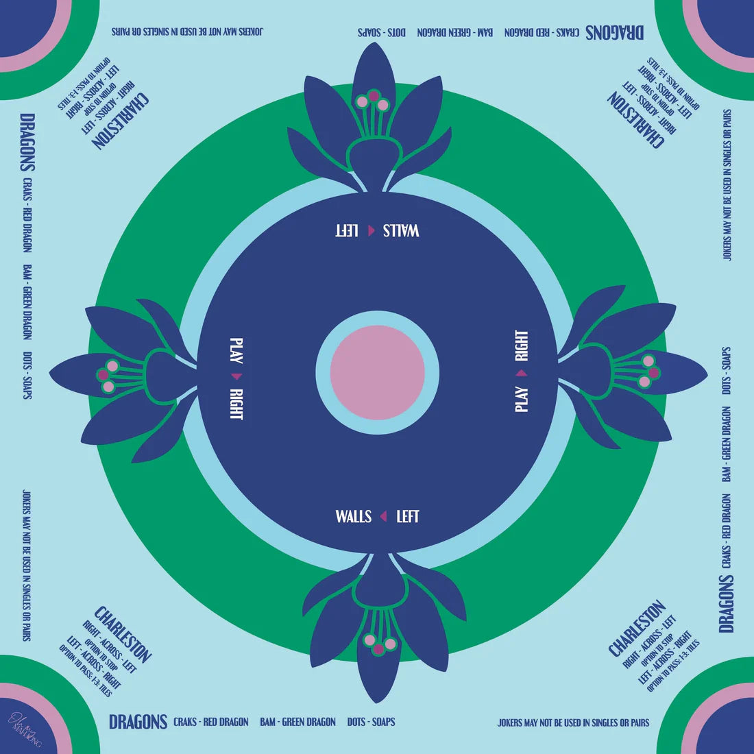 The perfect addition to your game night shenanigans! Not only does this mat scream style with its preppy color scheme, but it's also super functional. Featuring a non-slip surface, it ensures your tiles stay put as you play like a seasoned pro. Plus, it includes essential rules for American Mahjong, covering everything from directions of The Charleston, suit and dragon pairings, gameplay and wall direction and the pesky no jokers in a pair rule.