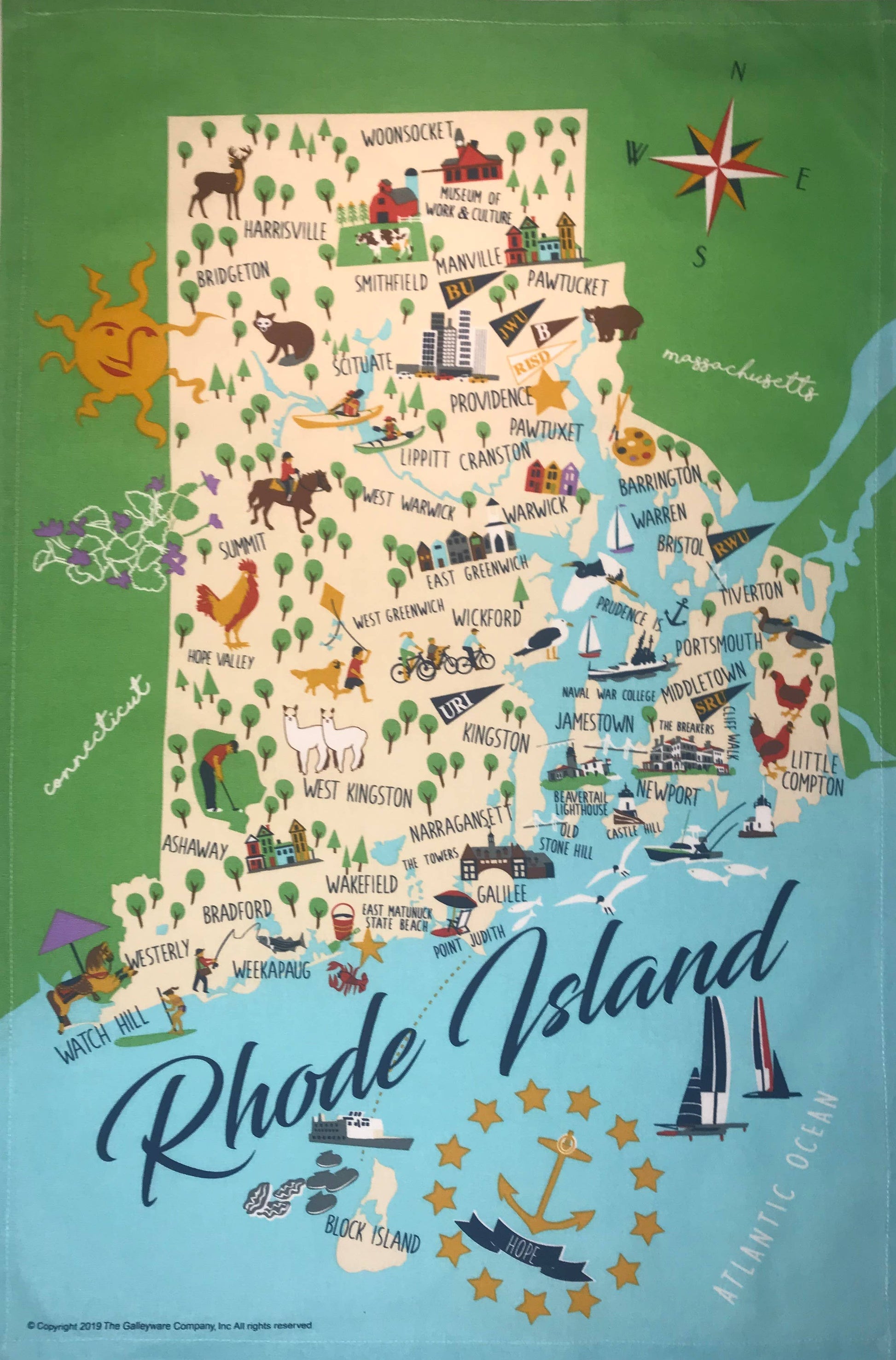 Bring a touch of Rhode Island charm to your kitchen with this whimsical cotton towel! Featuring original artwork of major towns and attractions, this 100% lint-free cotton towel is both decorative and functional. With an attached loop for easy hanging, it’s perfect for drying dishes or adding a coastal accent to your space. Machine washable for everyday use!