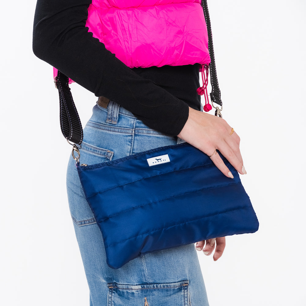 - Tote and pouch both become crossbodies with attachment of adjustable, removable strap