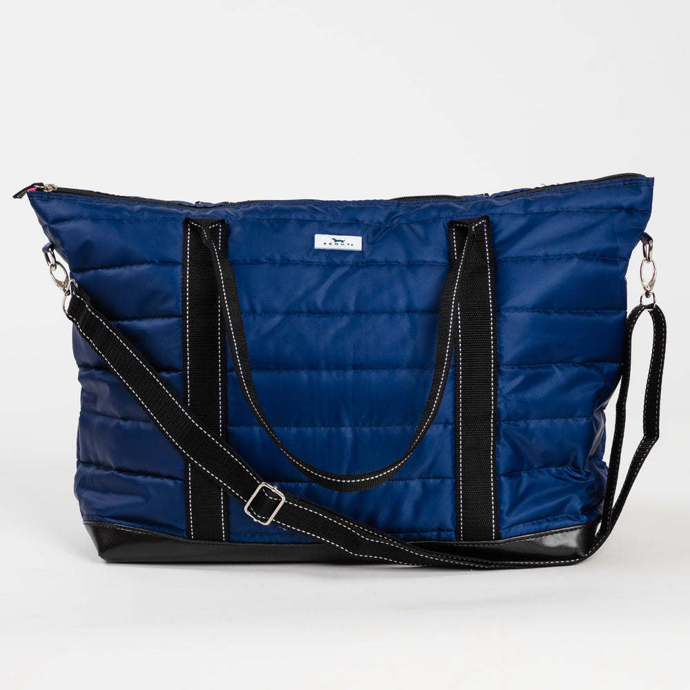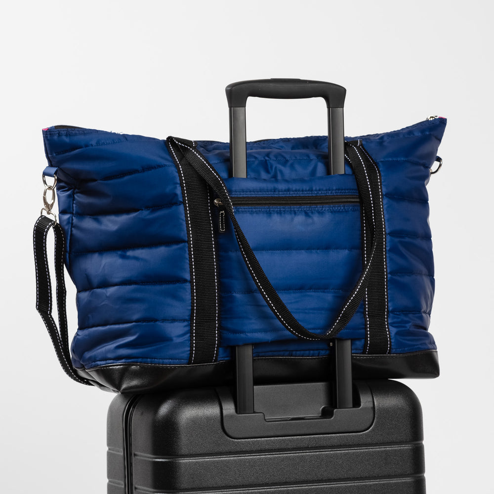 - Trolley sleeve with zipper pocket on tote to slide over luggage handle